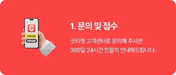 카카오톡 채팅문의 클릭 후 굿티켓 고객센터로 연락주시거나